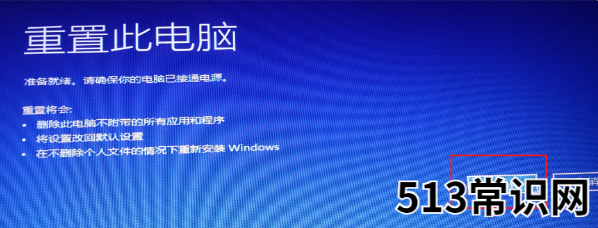 2、点击重置此电脑,您会看到如下界面,根据您自身需要,选择“是否保留已安装的软件,应用和资料”;