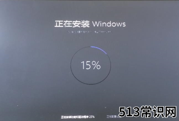 5、到100%后电脑会自动重启,开始全自动重新安装系统,从这里开始是全自动的,相当于把Windows 11重新安装一次,请耐心等待。