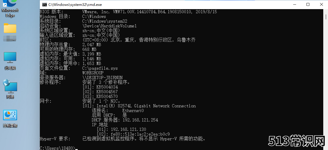 3、我们也可以使用键盘快捷键“win+r”然后输入cmd,打开命令提示符,然后输入systeminfo。
