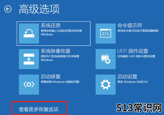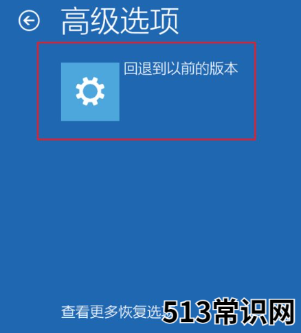 4、随后,点击【查看更多恢复选项】,继续点击【回退到以前的版本】