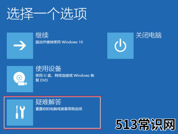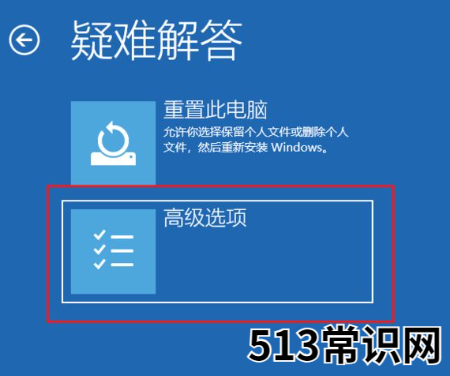 3、进入选择一个选项页面后,点击【疑难解答】-【高级选项】