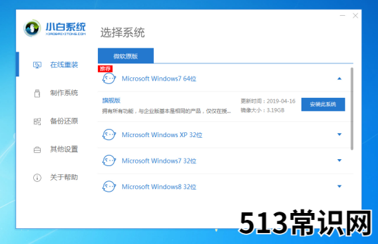 2、在线重装功能中点击选择一个自己需要的系统安装。