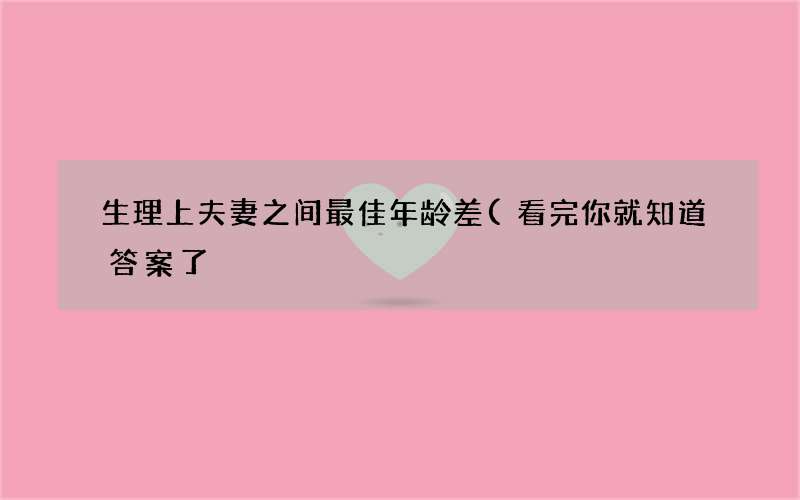 生理上夫妻之间最佳年龄差是多少?一般来说,如果想要夫妻幸福的话,其实是需要有年龄差的,从生理的角度来分析,其实男人和女人也最好也存在年龄差。今天就跟大家聊聊,生理上夫妻之间最佳年龄差是多少?