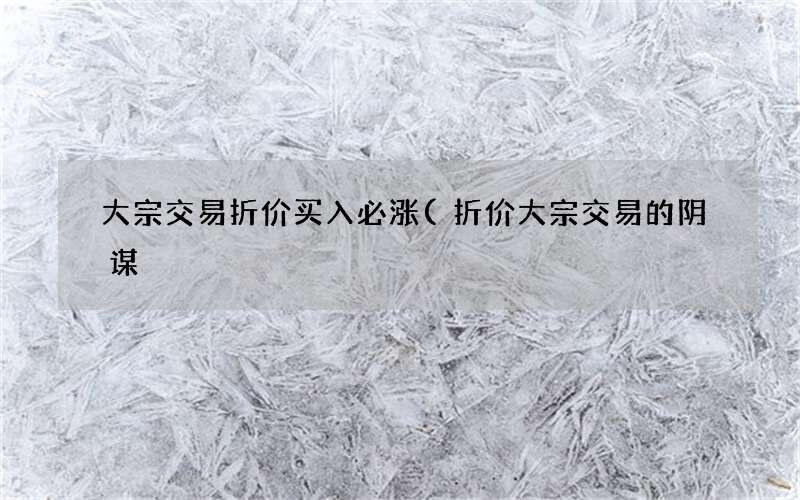 大宗交易折价买入必涨?折价大宗交易的阴谋,爱惜日带你了解相关信息。