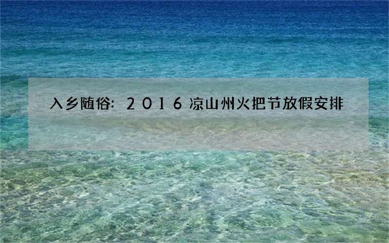 答:2016凉山州火把节放假安排:7月27日(农历六月二十四)至8月2日放假调休,共7天,7月24日(星期日)、8月6日(星期六)上班。