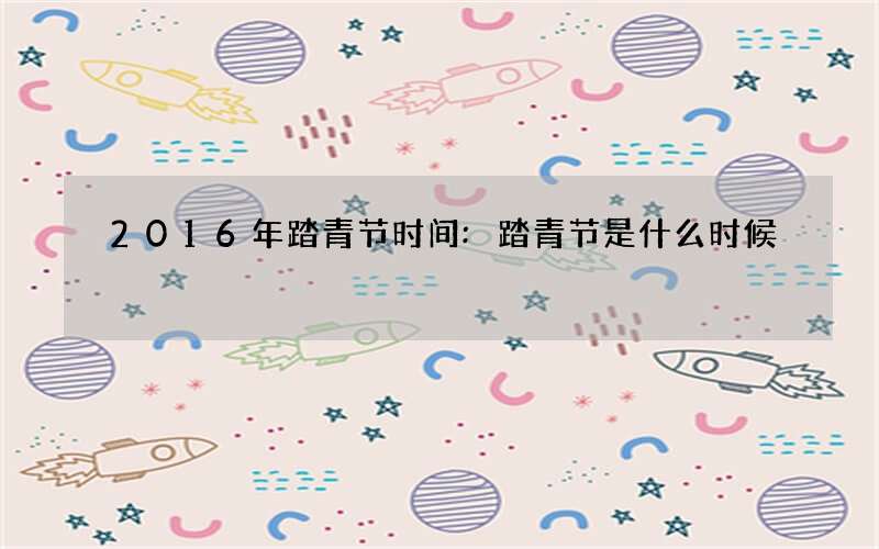 踏青为春日郊游,也称“踏春”,一般指初春时到郊外散步游玩。旧时曾以清明节为踏青节,不过,踏青节的日期因时因地而异,有正月八日的,也有二月二日或三月三日的,后来则以清明出游踏青居多。故而2016年的踏青节,可在清明节到农历三月三这段时间内进行。