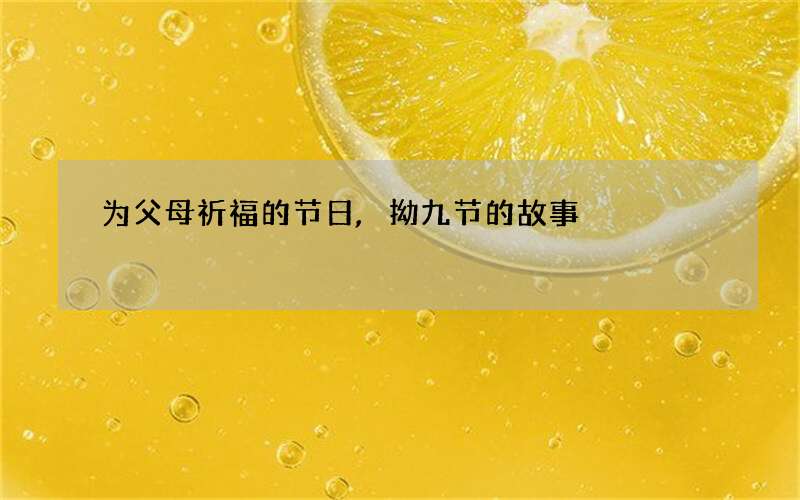 世界上最不能等的,就是孝敬父母。因为孝心,没有下一次。我们的父母是恒星,我们回家他们永远是在的,我们有什么理由能不去孝敬父母?能有什么理由不去为父母祈福?本期传统节日就为你讲诉为父母祈福的节日,拗九节的故事。