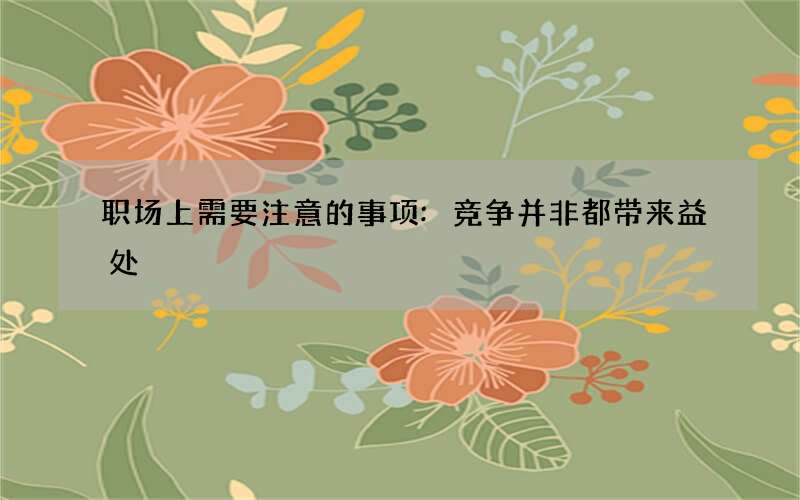 在职场,你和同事之间自然存在着竞争关系,但不要刻意放大这种“角力”,恶性竞争在损害了你的人际关系的同时,也会严重阻碍你的职业生涯。