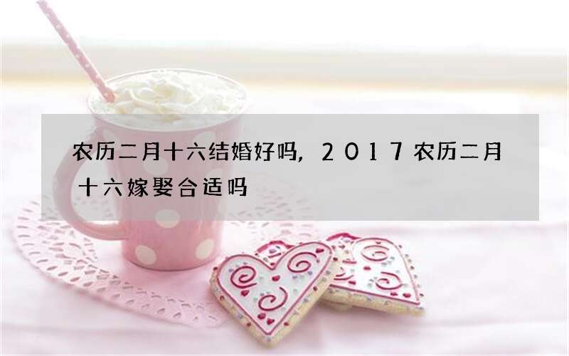查阅老黄历可见,2017年农历二月十六适宜结婚,有意办喜事的准新人们可将此日列入考虑。当然传统历书所列的当日用事宜忌只是供参考的一个方面,2017年农历二月十六当天是否适合结婚,还要看准新人双方的八字、生肖等,与彼此和彼此的亲属是否冲撞,这需要专业风水命理师的指导。