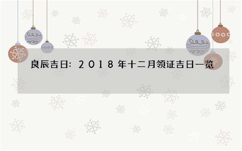 结婚证是婚姻登记管理机关签发的法律文书,它用于证明男女双方的婚姻关系有效成立。领取结婚证,代表着恋爱双方从此正式成为法定夫妻,也代表着甜蜜的恋爱旅程步入了新的阶段——婚姻的殿堂,从此开始幸福美满的一生。如今许多小夫妻结婚领证都要挑选良辰吉日,就是寄寓着对婚姻生活的美好祝愿,希望彼此能够相互扶持,直到白头,那么就一起来了解,2018年十二月领证吉日有哪些。