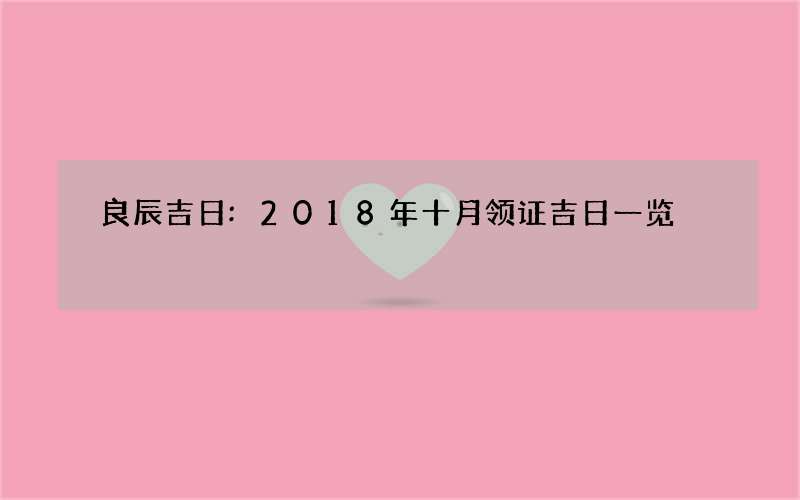 结婚证是婚姻登记管理机关签发的法律文书,它用于证明男女双方的婚姻关系有效成立。领取结婚证,代表着恋爱双方从此正式成为法定夫妻,也代表着甜蜜的恋爱旅程步入了新的阶段——婚姻的殿堂,从此开始幸福美满的一生。如今许多小夫妻结婚领证都要挑选良辰吉日,就是寄寓着对婚姻生活的美好祝愿,希望彼此能够相互扶持,直到白头,那么就一起来了解,2018年十月领证吉日有哪些。