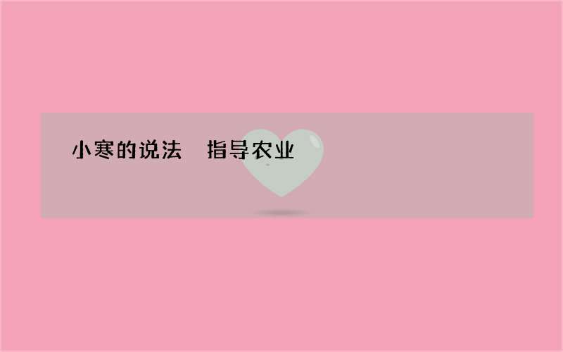 二十四节气农事歌中,对于小寒是这样说的:“小寒进入三九天,丰收致富庆元旦,冬季不断总结新经验。”因为到了小寒随时有大雪,“雪水成河,麦子稀薄”,会冻伤或冻死小麦。在这个时节,人们可增加防寒增温设施,保障农作物、牲畜等安全过冬。时节的变化不仅成为农作物的指导,也可以成为后面温度的预测。