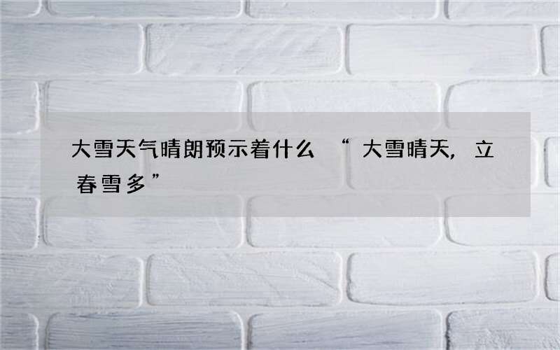 大家都知道,大雪是属于传统二十四节气之一,这个时候气温骤降,我国大部分地区最低气温甚至会降到零下,强烈冷空气的作用下,有很大的几率会带来强降雨或者降雪。那么如果在大雪这天,天气十分晴朗,对接下来整个冬天的天气走向和农作物会产生什么影响呢?感兴趣的朋友们快来一起看看吧。