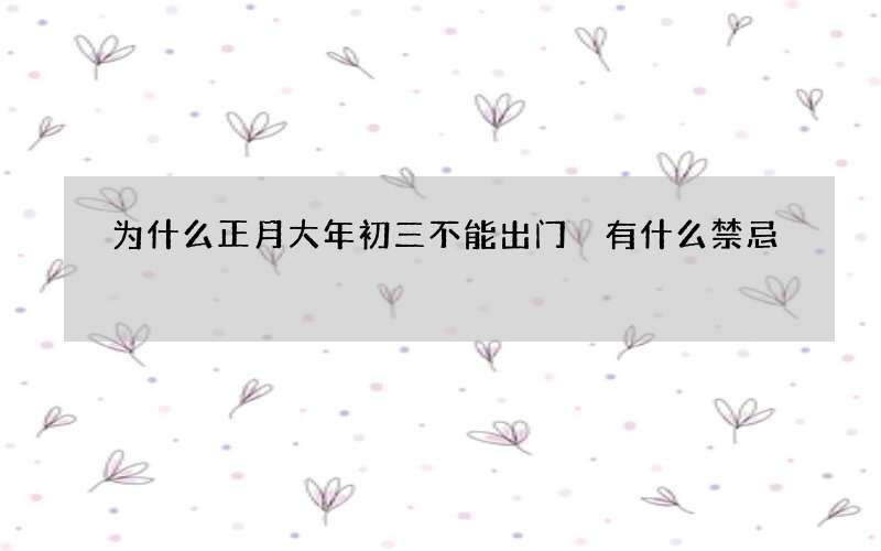 有的地方把正月初三称为赤狗日,而且认为正月初三这一天是不适合出门的。那么,这其中到底是为什么呢?在正月初三这尤为重要的一天,人们做事也需要遵守一定的禁忌,这样子才能让自己有一个好的运势。接下来让我们一起去看一看吧。