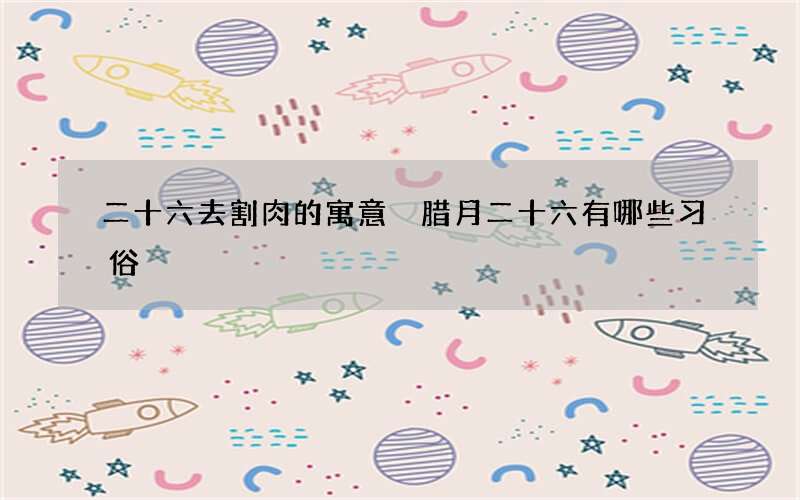 中国有许多的传统节日,且每个传统节日都有对应的风俗,人们对这些节日的风俗讲究都格外重视,比如到了腊月二十六这一天,就有去割肉的风俗,但是许多人这一风俗不太了解,下面就跟大家说说二十六去割肉的由来寓意,及腊月二十六的其它风俗。