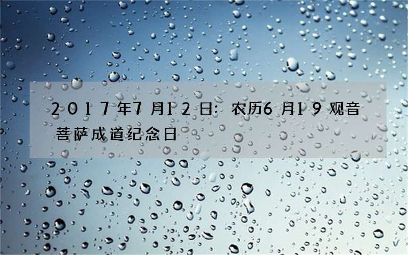 答:2017年农历6月19是公历2017年7月12日,是观音菩萨成道纪念日。