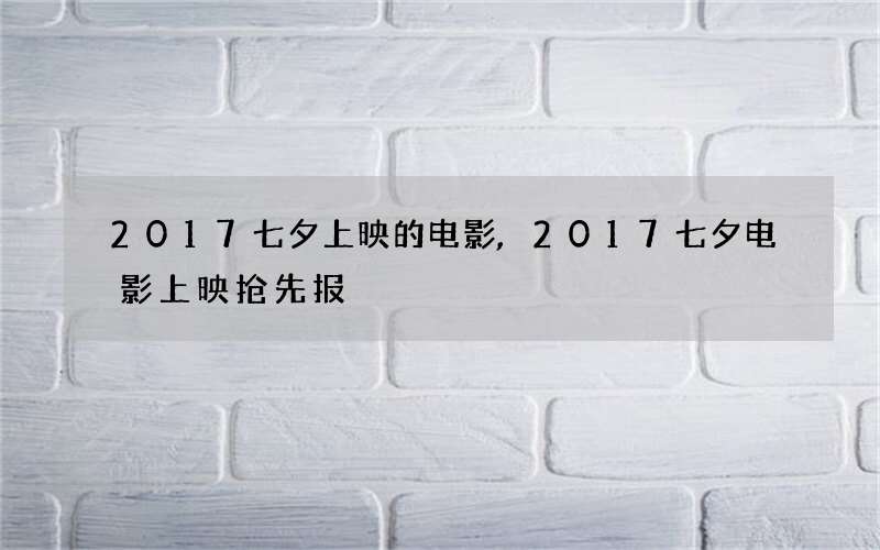 2017七夕上映的电影,2017七夕电影上映抢先报