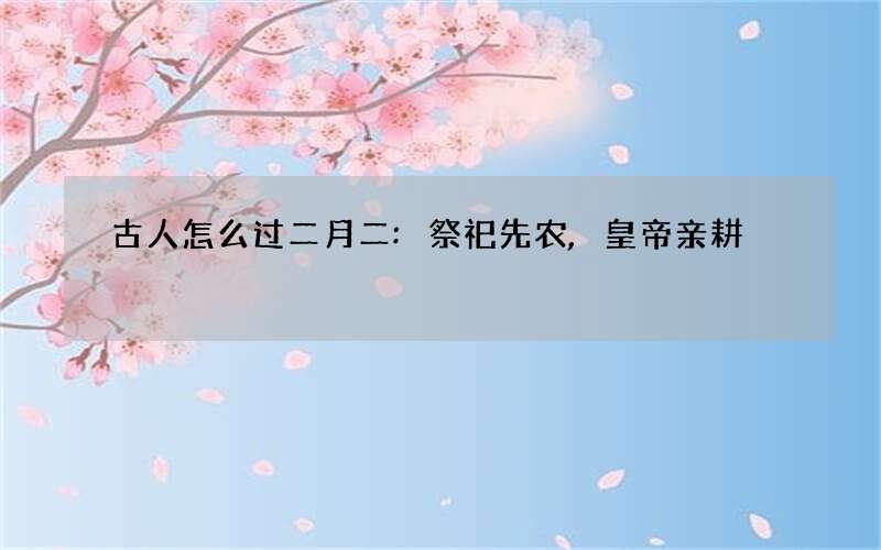农历的二月初二是我国的传统的龙头节,也称春龙节、青龙节。那么在二月初二除了剃头还有什么民间风俗吗?本期传统节日就带你一起去了解一下古人怎么过二月二:祭祀先农,皇帝亲耕,一起来看看吧。
