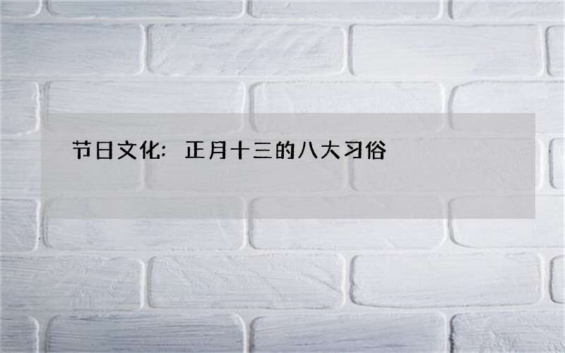 农历正月十三的时候,虽然春节已经过了好几天,但按照民间的风俗习惯,过年还不算结束,同时正月十五元宵也近在眼前了,所以依然是一个充满喜庆的日子。那么今天的传统节日就为你介绍正月十三的八大习俗。