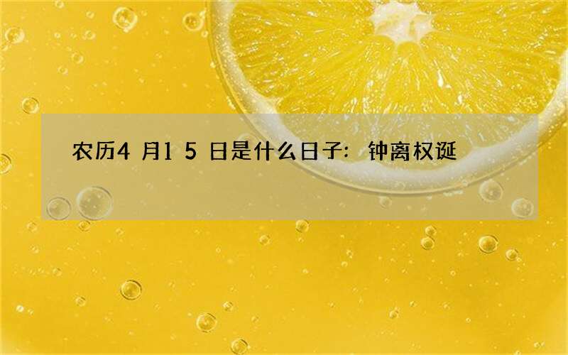 每年的农历四月十五日,是八仙之一钟离权的寿诞日。钟离权祖师,姓钟离,名权,字云房,一字寂道,号正阳子,又号和谷子。东汉、魏晋时期人物,咸阳人。为东汉大将,故又被称做汉钟离。