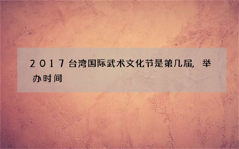 以武会友是中华江湖儿女的传统,那么2017台湾国际武术文化节是第几届,举办时间是什么时候。本期文化节就带你一起去了解一下2017台湾国际武术文化节的举办时间,下面我们就一起来看看吧。