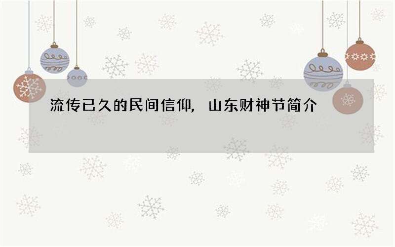 中国的汉族民间习俗是在正月初五拜财神爷,而在七月二十二,又是祭祀财神的日子,因此,我们称这一天为财神节,这样的习俗已经遍及了中国,本期的财神节带你去了解流传已久的民间信仰,山东财神节简介。